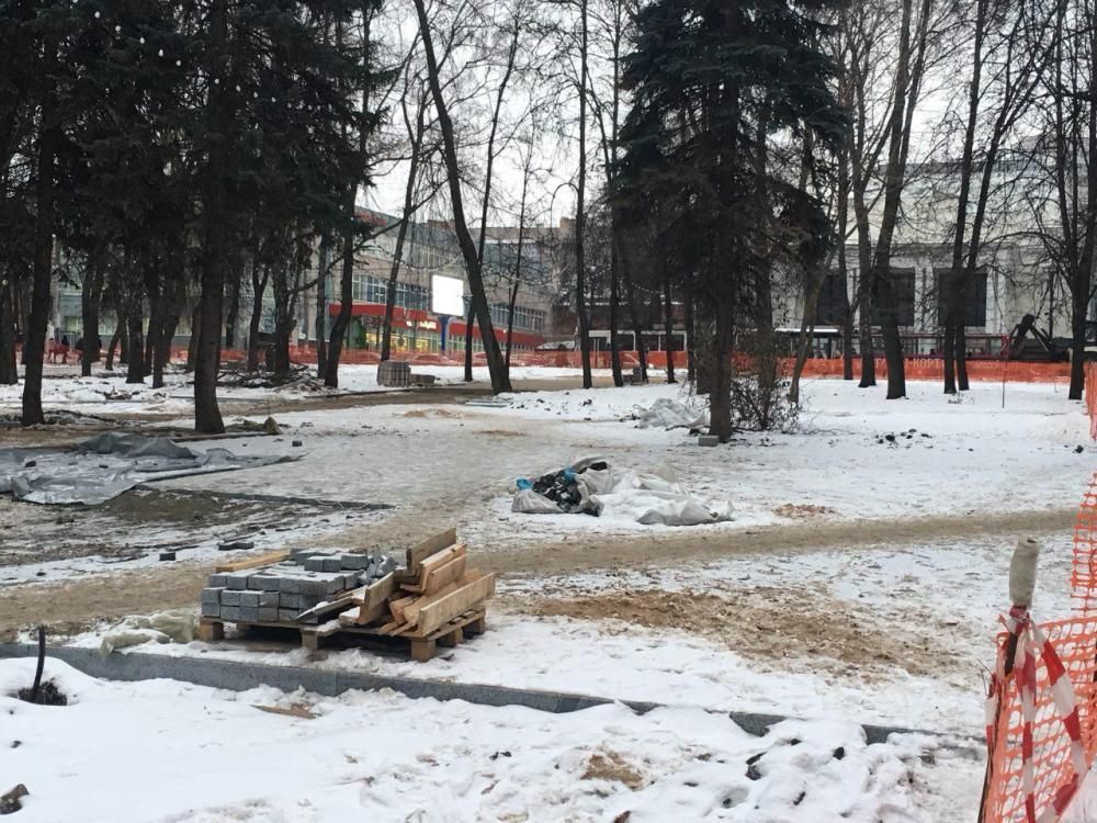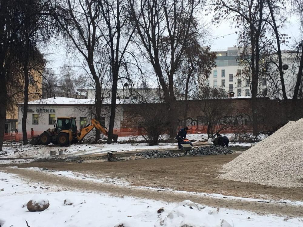 Вот так сквер выглядел 9 декабря. При этом работники не очень то рассчитывают, что благоустройство можно будет качественно завершить до конца года.