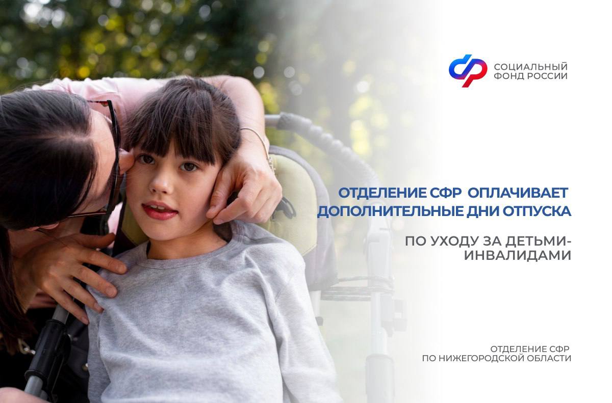 С начала года в Нижегородской области было оплачено почти 57,8 тыс дополнительных дней отпуска по уходу за детьми-инвалидами. Об этом сообщило Отделение Социального фонда России по региону.