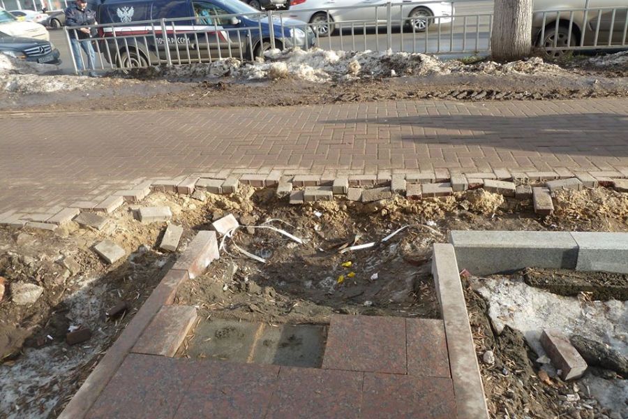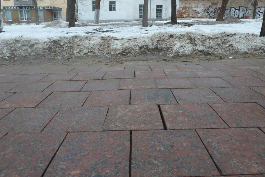 "В ноябре подрядчик уверял, что используя некую современную технологию, можно и в мороз, и при перепадах температур, и пр.пр. проводить работы по укладке гранита. Были сомнения, но надеялась на слова "специалистов". Увиденное превзошло ожидания. Как и прогнозировалось, технология укладки гранита в снег на минусовой температуре - себя не оправдала. Плитка пошла "волнами". Поскольку песчаная основа не была выровнена, плитка в сколах. Много несостыковок. Местами маленькие гранитные камни просто выковыряны, местами лежат под наклоном", - поделилась впечатлениями Мария Попова.
