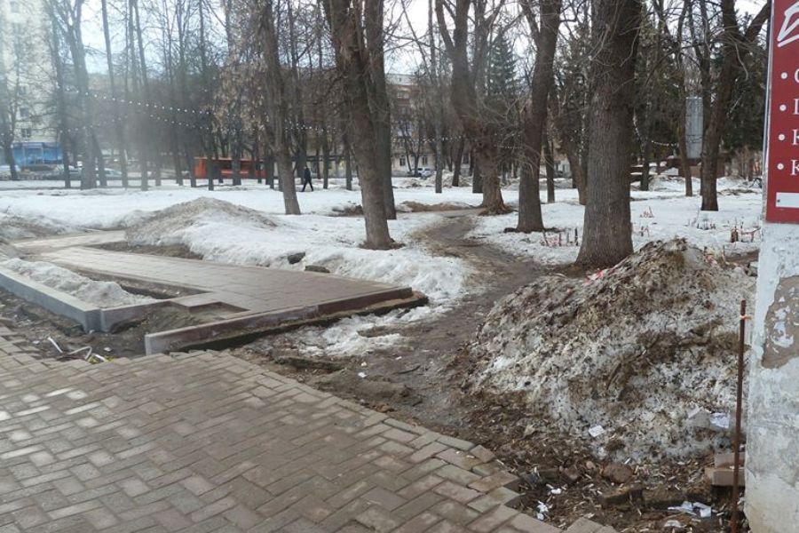 Председатель союза попечительских советов парков также отметила, что входная зона со стороны ул. Белинского – травмоопасна. "По тому, как уложены новые плиты, сложно определить - ступени не доделаны или не начаты", - добавила она.