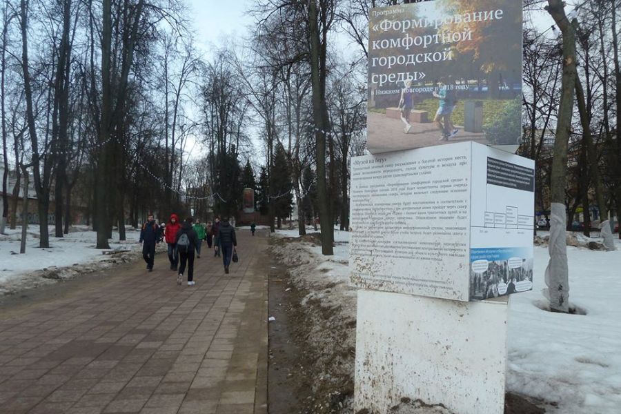 Как написала на своей странице в социальной сети председатель союза попечительских советов парков Нижнего Новгорода Мария Попова 26 марта 2019 года, после того как практически сошел снег, она оценила итоги выполненных работ первого этапа по благоустройству Сквера им. 1905 года.