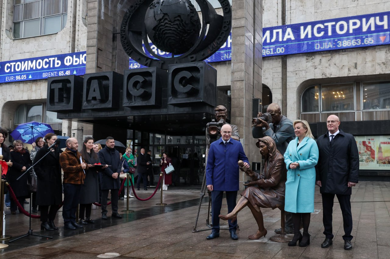 Композицию установили в сквере перед зданием ТАСС. В правительстве отмечают, что это первый памятник в России, посвященный всем действующим журналистам.